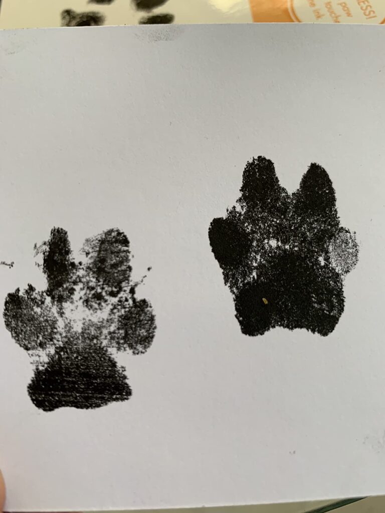 Mój szczeniak ma teraz 4 miesiące i cieszę się że zrobiłam odcisk póki jego łapki były jeszcze takie maleńkie. Pierwszy odcisk trochę się rozmazał bo Burek się wiercił, ale za drugim razem wyszło perfekcyjnie i teraz mam pamiątkę z jego dzieciństwa. Najlepsze że jego łapki zostały całkowicie czyste, bo wiem jak to jest czyścić szczeniaka po czymkolwiek.