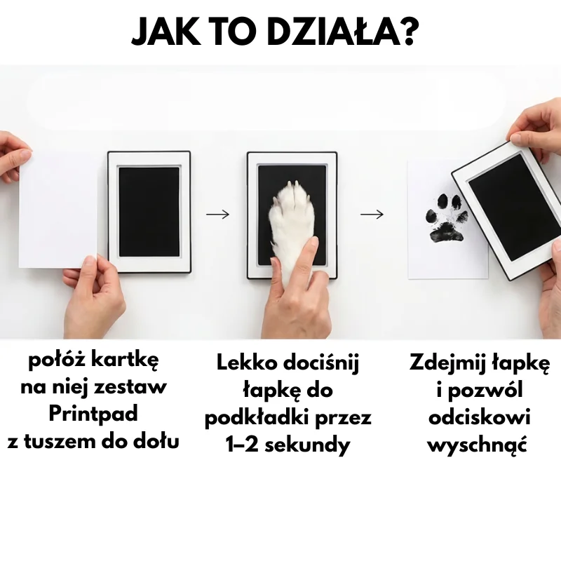 PrintPad pozwala zachować prawdziwy odcisk łapki Twojego pupila jako trwałą pamiątkę. To coś więcej niż zdjęcie – to ślad, który przypomina o wspólnych chwilach.